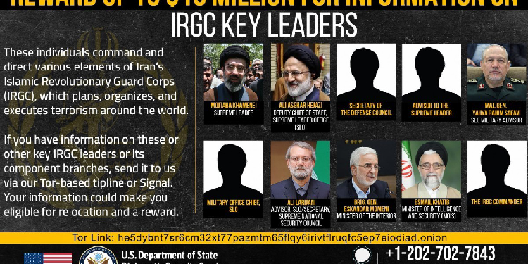 ABD Dışişleri Bakanlığı Adalet İçin Ödüller (Rewasrds for Justice) programı X resmi sanal medya hesabında İran liderleri hakkında bilgi verenlere para ödülü vereceklerini duyurdu. İran’ın önde gelen askeri, siyasi liderlerinin hedef alındığı listede kişiler hakkında bilgi verilmesi halinde 10 milyon dolara kadar ödül verileceği kaydediliyor.