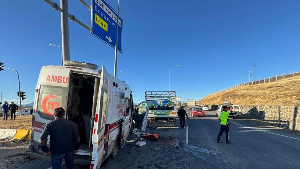 Ağrı’da Hamur kara yolunda bulunan Ahmed-i Hani Havalimanı kavşağında S.A. yönetimindeki ambulans ile H.A. idaresindeki kamyonet çarpıştı. Olay yerine çok sayıda polis ve sağlık ekipleri yönlendirildi. Kaza sonucunda, sürücüler de dahil olmak üzere toplamda 7 kişi yaralandı.