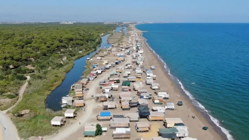 Antalya’nın Aksu ilçesindeki Kumköy Sahili’nde, deniz kaplumbağalarının yuvalama alanı olarak belirlenen bölgede yer alan çardaklar, Aksu Belediyesi tarafından yıkıldı. 2021 yılından bu yana süregelen yıkım süreci sonunda 700 çardağın yıkımı tamamlandı ve alanın temizlenmesinin ardından plaj halkın kullanımına açılacak. Denize sıfır konumda bulunan sahilde yıllardır tatil yapan bazı vatandaşlar, yıkımın yapılacağı konusunda bilgilendirilmediklerini ifade ederek, “Çocukluğumuzdan beri sahil kenarındayız, çok anımız vardı. Anı da kalmadı, bir şey de kalmadı” dedi.