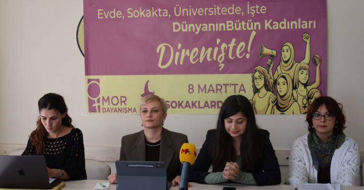 Mor Dayanışma ve Kampüs Cadıları, kadın haklarına yönelik artan saldırı, kadın cinayetleri ve kampüslerde yaşanan hak ihlallerine...