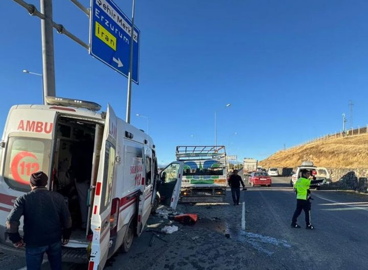 Ağrı’da Hamur kara yolunda bulunan Ahmed-i Hani Havalimanı kavşağında S.A. yönetimindeki ambulans ile H.A. idaresindeki kamyonet çarpıştı....