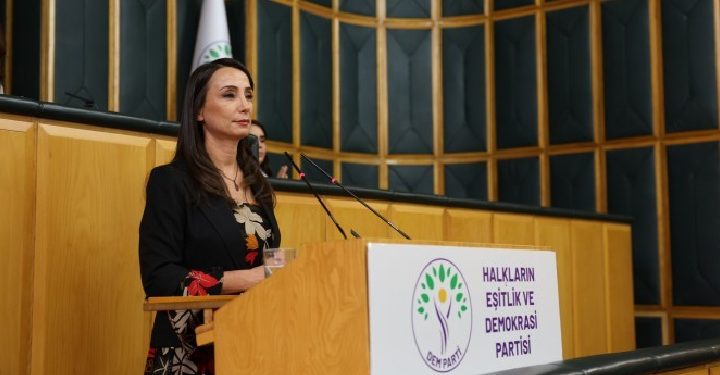 Halkların Eşitlik ve Demokrasi Partisi (DEM Parti) Eş Genel Başkanı Tülay Hatimoğulları, partisinin Meclis grup toplantısı sonrası...