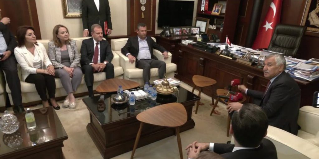 CHP Genel Başkanı Özgür Özel, 31 Mart yerel seçimlerinin ardından partisinin kazandığı il ve ilçelere teşekkür ziyaretlerine devam ediyor. Bugün Adana’ya gelen Özel, önce parti il başkanlığını ziyaret etti ve ardından Adana Büyükşehir Belediye Başkanı Zeydan Karalar’ı makamında ziyaret etti.