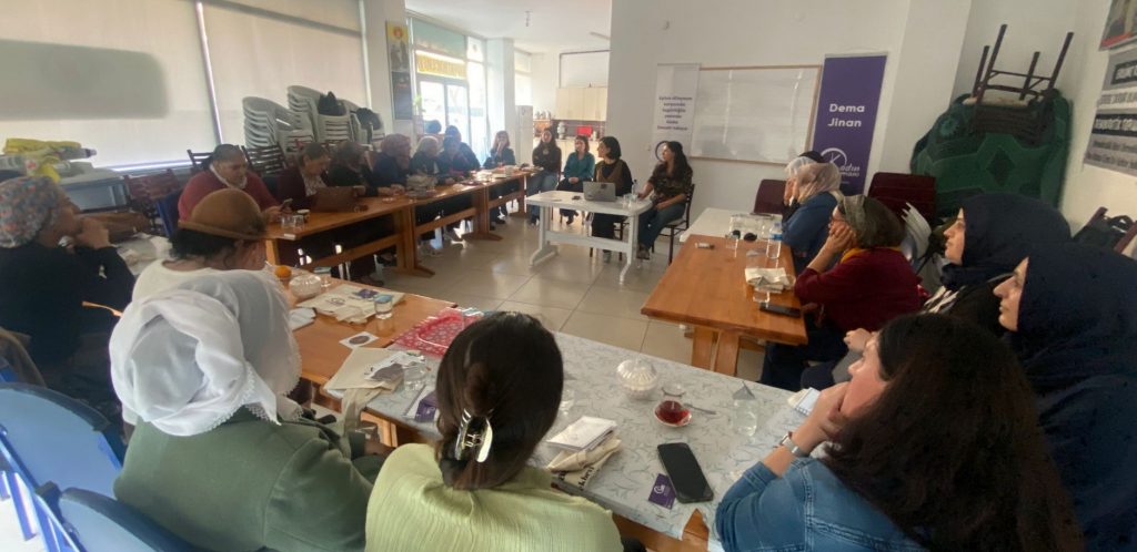 Kadın Zamanı Derneği, 25 Kasım Kadına Yönelik Şiddete Karşı Uluslararası Mücadele Günü etkinlikleri kapsamında Kocaeli’nin Gebze ilçesinde bulunan Anafatma Derneği’nde “şiddet türlerini” buluşması gerçekleştirdi. Kadın Zamanı Derneği üyesi Şükran Demir, şiddet ve şiddetle mücadele yöntemleri üzerine bir sunum gerçekleştirdi. Şükran Demir, kadınların şiddetten nasıl etkilendiğine, şiddete döngüsünden nasıl çıkabileceğine dair bilgilendirmelerde bulundu.