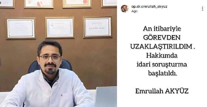 Ağrı Devlet Hastanesi’nde operatör doktor olarak görev yapan Emrullah Akyüz, sağlık sistemindeki ihmalleri kamuoyuna taşıdığı video ardından...