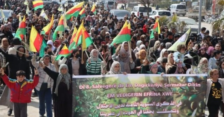 Türkiye ve bağlı paramiliter güçlerin Êfrin’i işgalinin yıl dönümünde yapılan eylemlerde 29 Ocak anlaşmasına uyularak Efrîn halkının...