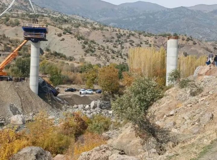 Kulp-Muş Karayolu üzerinde, Kulp ilçesinin Tepecik ve Karabulak mahalleleri arasında inşaat halinde olan viyadükte beton dökme işlemi...