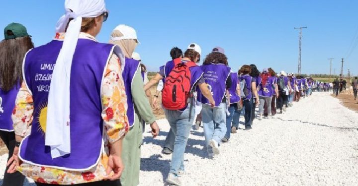 Özgür Kadın Hareketi’nin (Tevgera Jinen Azad-TJA) Kürt Halk Önderi Abdullah Öcalan’ın fiziki özgürlüğü için, “Umutla özgürlüğe yürüyoruz”...