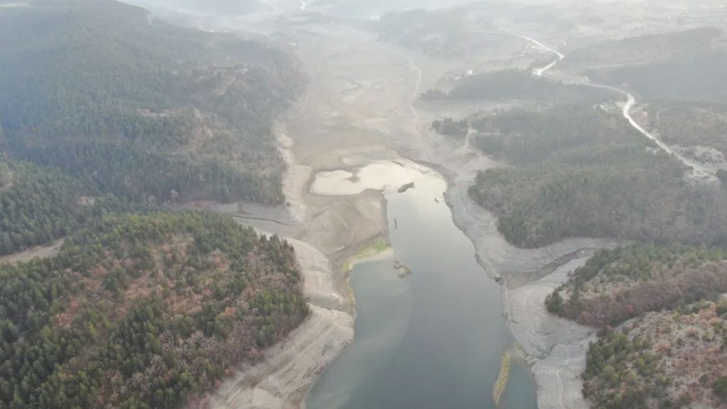 Su seviyesinin çekilmesinin ardından baraj gölünde küçük adacıklar belirmeye başladı. Havadan çekilen görüntüler, kuraklığın etkilerini gözler önüne seriyor.