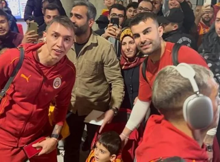 ÇİÇEKLERLE KARŞILANDILAR Taraftarlar tarafından büyük bir coşkuyla karşılanan sarı-kırmızılı futbolculara ve teknik direktör Okan Buruk’a çiçek verildi....